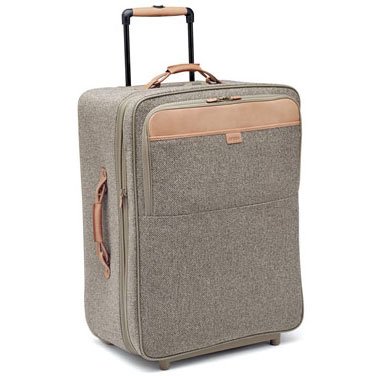 Virtually indestructible nylon tweed fabric with Belting Leather trim Push-button locking handle system, extremely durable in-line skate wheels and patented Baggage Link quick-clip strap Expands 2 inches for additional packing space 2 exterior and 2 interior zip pockets Zip pouch, laundry bag, removable garment sleeve with hanger, combination padlock and custom Belting Leather luggage tag included Dark antique brass finished hardware Colors: Walnut Tweed Size: 12"(D) x 19.75"(L) x 27"(H)