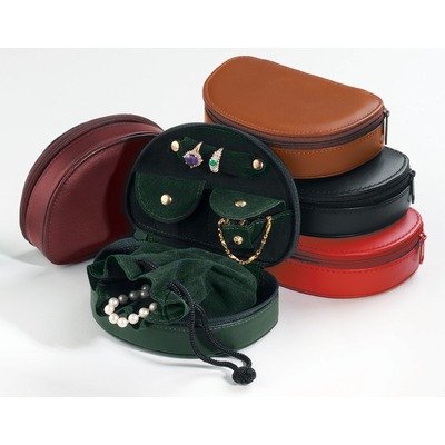 922-8+302 Color: Black This mini jewelry case is the perfect way to store those valuables. A cute and compact zippered case with a ring bar, two snap pockets for bracelets or chains and a removable drawstring pouch. Features: -Available in Black, Burgundy, or Tan -Ultra-bonded leather -Zippered case -Ring Bar -2 snap pockets for bracelets or chains -Removable drawstring pouch -Overall Dimensions: 3.5'' H x 5.25'' W x 1.5'' D Want to personalize this item? All Royce Leather products can be personalized for an additional charge. Call our toll free customer service number for a free quote! Personalized items may not be returned!