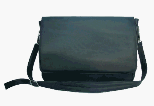 Flap-over with two magnetic closures. Opening to reveal two compartments with padded laptop pocket and full organizer. Adjustabledetachable shoulder strap.