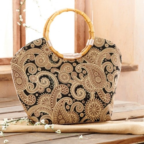 The Detailed Description of Mud Pie Black Paisley Bag with Bamboo HandlesFeatures