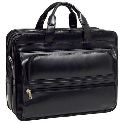 86485 Features: -Front organizer pocket for media devices, cell phone, business cards, key chain holder and pens.-Front zipper pocket for small miscellaneous items.-Front compartment with accordion file for all your document needs and two small pockets.-Back compartment padded to protect most laptops up to 17'' in size.-Smart Zipper Attachment allows piggy-backing on extended handles of other rolling cases and luggage. Construction: -Constructed of leather. Dimensions: -Laptop compartment dimensions: 10'' H x 16'' W x 2'' D.-Hand strap drop length: 4''.-Shoulder strap drop length: 13'' - 17.5''.-Dimensions: 12'' H x 16.5'' W x 4.5'' D.