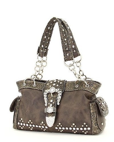 Look amazing wearing this beautiful Western Rhinetone Buckle Crocodile Satchel Handbag with lots of bling bling!
