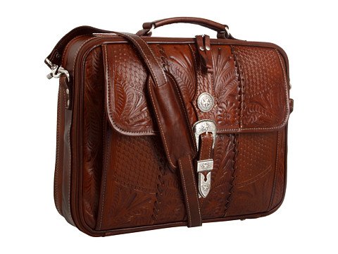 Don't let the long days and scary commutes ruin your day. The Retro Romance Laptop Briefcase by American West is the effortless answer to all your daily essentials. Vintage styling with a floral and basket weave design. Whip-stitch and silver-toned antique metal details. Metal concho and buckle set. Adjustable and removable shoulder strap. Grab handle for days on the go. Exterior slip pocket for quick storage. Flap pocket provides storage for smaller items. Leather tassles on the zippers. U-shaped zipper openings provides full access to interior storage. Platform bottom with metal feet for protection. Measurements: ; Bottom Width: 16 in ; Middle Width: 16 in ; Top Width: 16 in ; Depth: 4 in ; Height: 12 1 2 in ; Handle Length: 8 in ; Handle Drop: 2 in ; Accessory Strap Length: 48 in ; Accessory Strap Drop: 19 in ; Weight: 4 lbs 15 oz ; Product measurements were taken using size . Please note that measurements may vary by size.