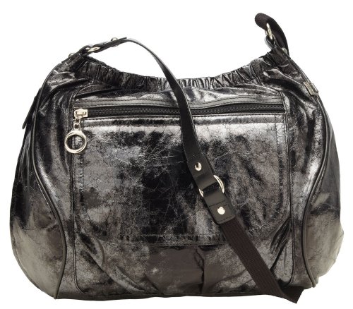 6413 Features: -Diaper bag.-Metallic distressed faux leather.-One main internal compartment with elasticized pockets.-Exterior pocket for personal items.-Padded micro fiber change mat.-Insulated zip pocket - insulation for 2 hours.-Adjustable shoulder strap.-Gunmetal lining and trim. Color/Finish: -Color: Black Metallic. Collection: -Out and About Collection. Warranty: -1 Year manufacturer's warranty.