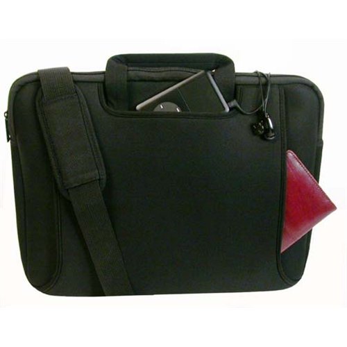 468004BLK Features: -Eco-Friendly with recycled surface and non-toxic backing.-Ideal for cell, iPod, and MP3 use or storage.-Removable shoulder strap for hands free cross shoulder carrying.-Soft structure enables case to expand up to 2''.-Fits up to 15.4''notebook (13.25 x 11), Netbook, Kindle, iPad and tablets. Includes: -Includes soft padded dividing arm to secure smaller devices. Dimensions: -Dimensions: 11.25'' H x 14.25'' W x 1.5'' D.