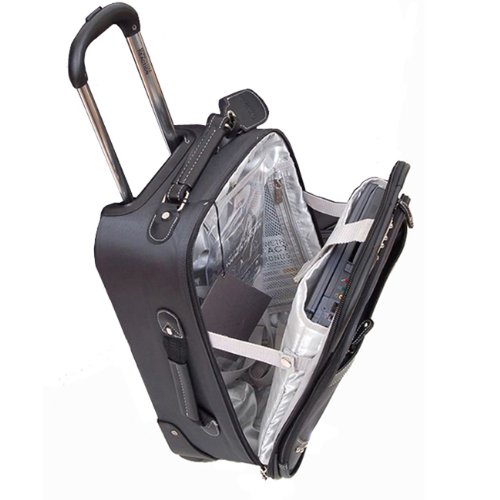 - Fully lined interior features garment restraints, one quart size "flight friendly" toiletry top zip bag for carry-on liquid, and two side mesh zipper pockets